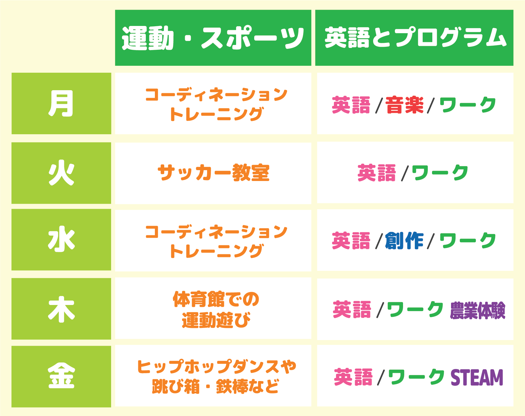 | 開園時間 | 平日:9:00 ~ 15:00 登園開始:8:30 ~ ※春休み・夏休み・冬休みがあります。 |